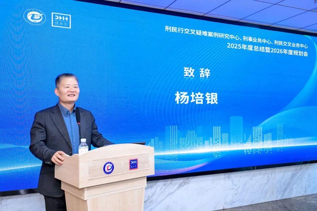 山東德衡律師事務(wù)所高級權(quán)益合伙人、執(zhí)行總裁、刑民行交叉疑難案例研究中心顧問楊培銀主任在開幕致辭時對山東大區(qū)業(yè)務(wù)中心尤其是三大中心的活動表示充分肯定,對中心在2025年取得的案件成果、團隊建設(shè)及社會影響力提升等方面給予高度評價,倡導(dǎo)關(guān)注跨領(lǐng)域協(xié)同研究在應(yīng)對復(fù)雜案件中的實踐價值。他希望三大中心2026年在復(fù)雜案件應(yīng)對與創(chuàng)新法律服務(wù)領(lǐng)域持續(xù)引領(lǐng)行業(yè)方向。