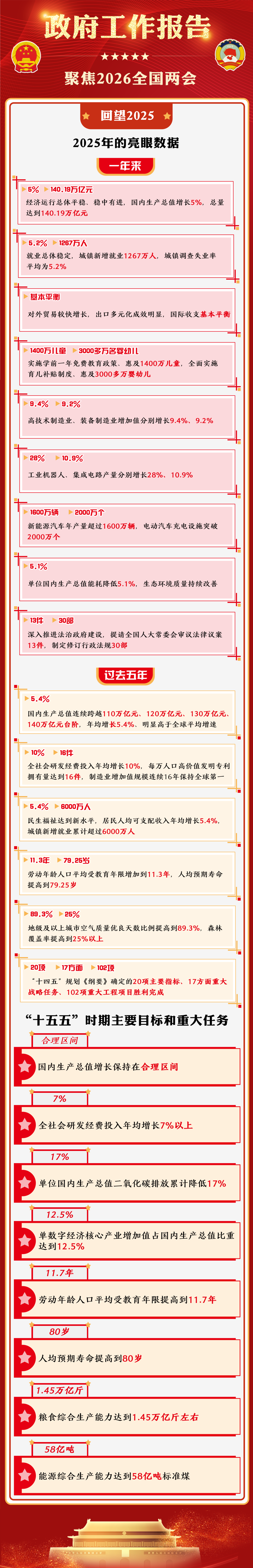 【法治數(shù)讀】一起來(lái)看2026全國(guó)兩會(huì)政府工作報(bào)告中的亮眼數(shù)據(jù)!