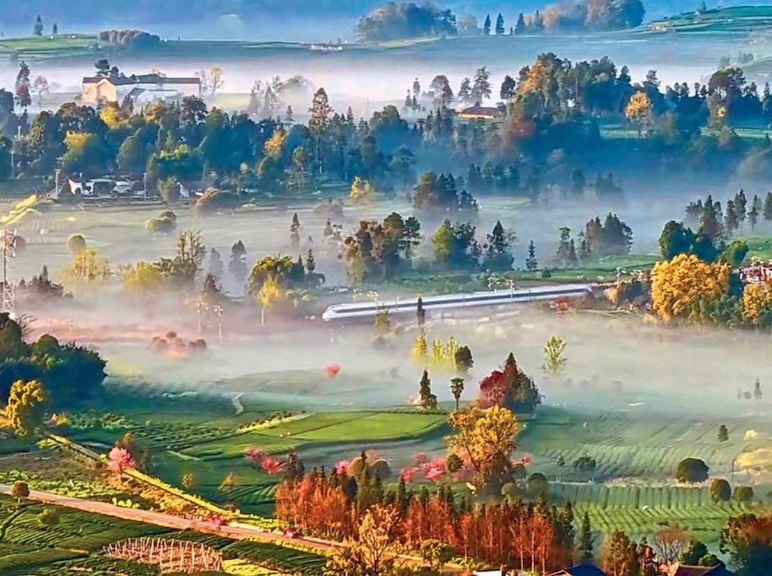 動(dòng)車穿行晨霧茶山 名山春日美景驚艷全網(wǎng)
