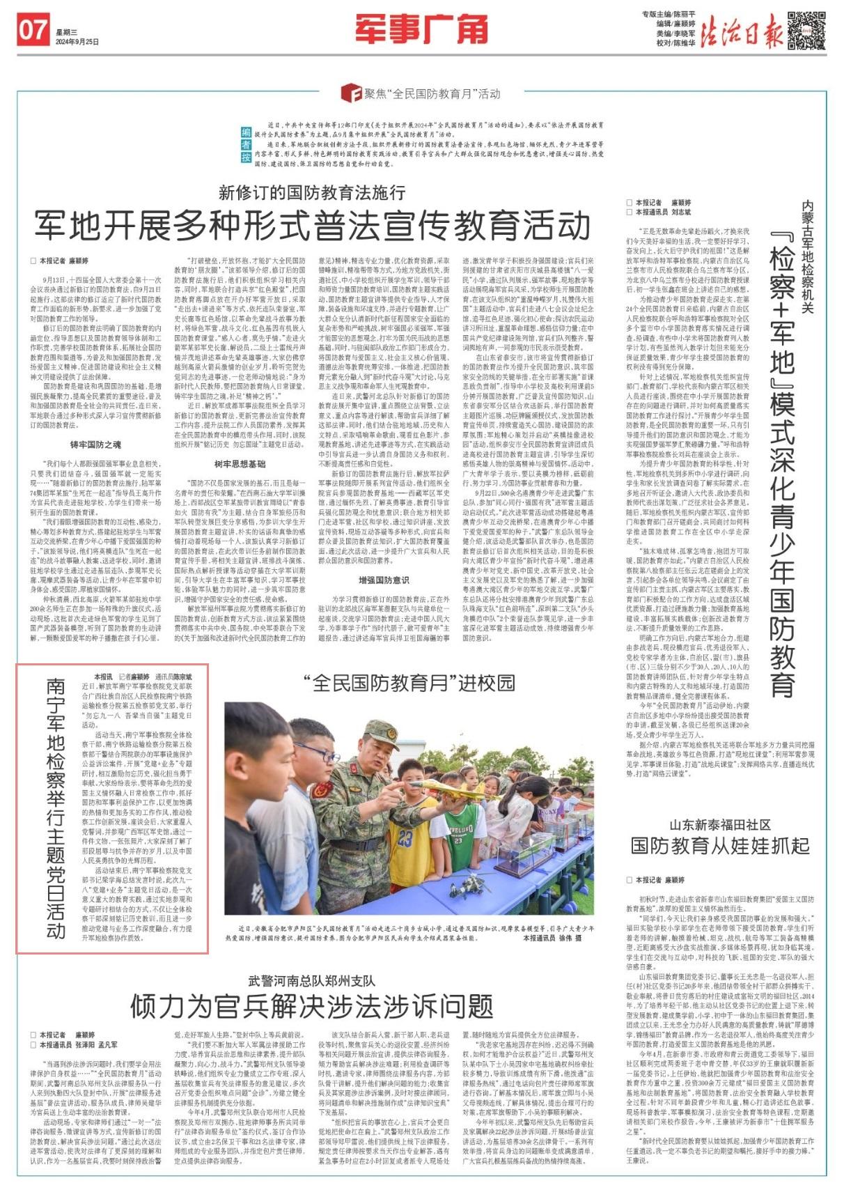 近日,解放軍南寧軍事檢察院黨支部聯(lián)合廣西壯族自治區(qū)人民檢察院南寧鐵路運輸檢察分院第五檢察部黨支部,舉行“勿忘九一八 吾輩當自強”主題黨日活動。