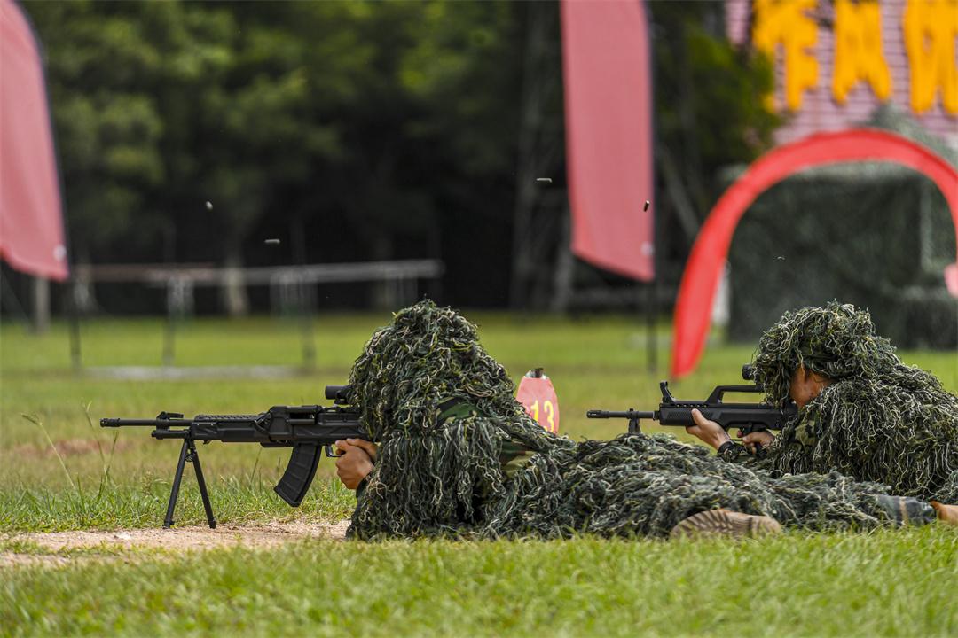 圖為官兵進(jìn)行射擊課目演示。