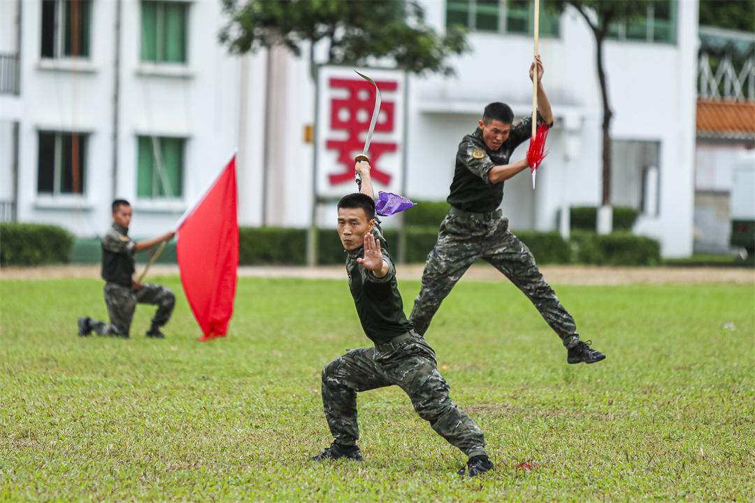 圖為官兵進(jìn)行武術(shù)表演。