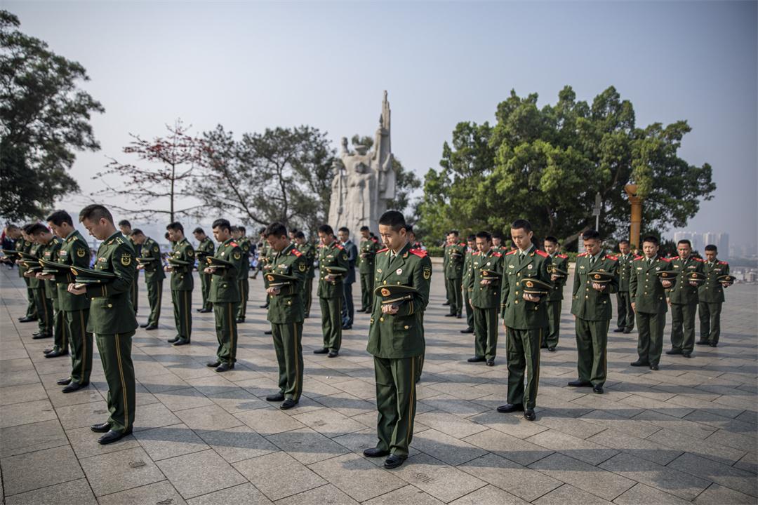 圖為官兵在紀(jì)念碑前重溫入黨誓詞。陳洪輝 攝