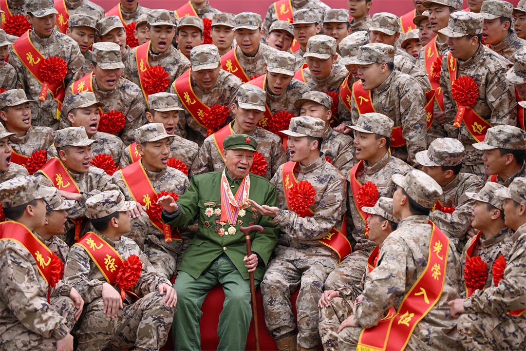 在今年上半年新兵役前教育訓(xùn)練中,安徽省合肥市廬陽(yáng)區(qū)人武部邀請(qǐng)抗戰(zhàn)老兵宣鉅華與新兵分享交流從軍經(jīng)歷,講述戰(zhàn)斗故事,激勵(lì)廣大新兵扎根軍營(yíng)苦練軍事本領(lǐng),爭(zhēng)當(dāng)新時(shí)代“四有”革命軍人。