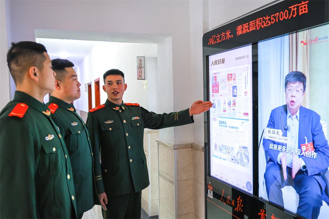 連日來(lái),該支隊(duì)緊貼任務(wù)實(shí)際,創(chuàng)新學(xué)習(xí)形式,推動(dòng)全國(guó)兩會(huì)精神直達(dá)基層、深入兵心。從機(jī)關(guān)到基層,從干部到戰(zhàn)士,官兵們通過(guò)電視直播、報(bào)刊閱讀、網(wǎng)絡(luò)學(xué)習(xí)等多種渠道實(shí)時(shí)跟進(jìn)兩會(huì)動(dòng)態(tài),深刻領(lǐng)會(huì)精神實(shí)質(zhì);積極構(gòu)建視、聽(tīng)、讀、議立體學(xué)習(xí)矩陣,從新媒體平臺(tái)實(shí)時(shí)推送,到利用政工平臺(tái)整合“三個(gè)半小時(shí)”打造的線上線下全媒體課堂,再到依托信息櫥窗、主題板報(bào)營(yíng)造“處處能學(xué)”氛圍,官兵們通過(guò)多渠道實(shí)現(xiàn)學(xué)習(xí)同頻共振、全員覆蓋。基層單位立足實(shí)際積極開(kāi)設(shè)“士兵講堂”,遴選訓(xùn)練尖兵、理論骨干組成宣講小隊(duì),結(jié)合從軍經(jīng)歷、訓(xùn)練任務(wù)以及家鄉(xiāng)發(fā)展變化,分享自己對(duì)兩會(huì)精神的獨(dú)特見(jiàn)解和熱點(diǎn)詞匯。官兵們談體會(huì)、話使命、謀發(fā)展,在思想碰撞中凝聚奮斗強(qiáng)軍共識(shí),筑牢鐵心向黨的思想根基。
