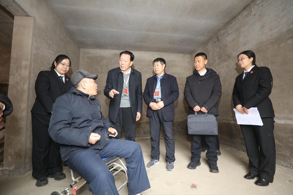 圖為法官與人大代表現(xiàn)場聽取當事人訴求。