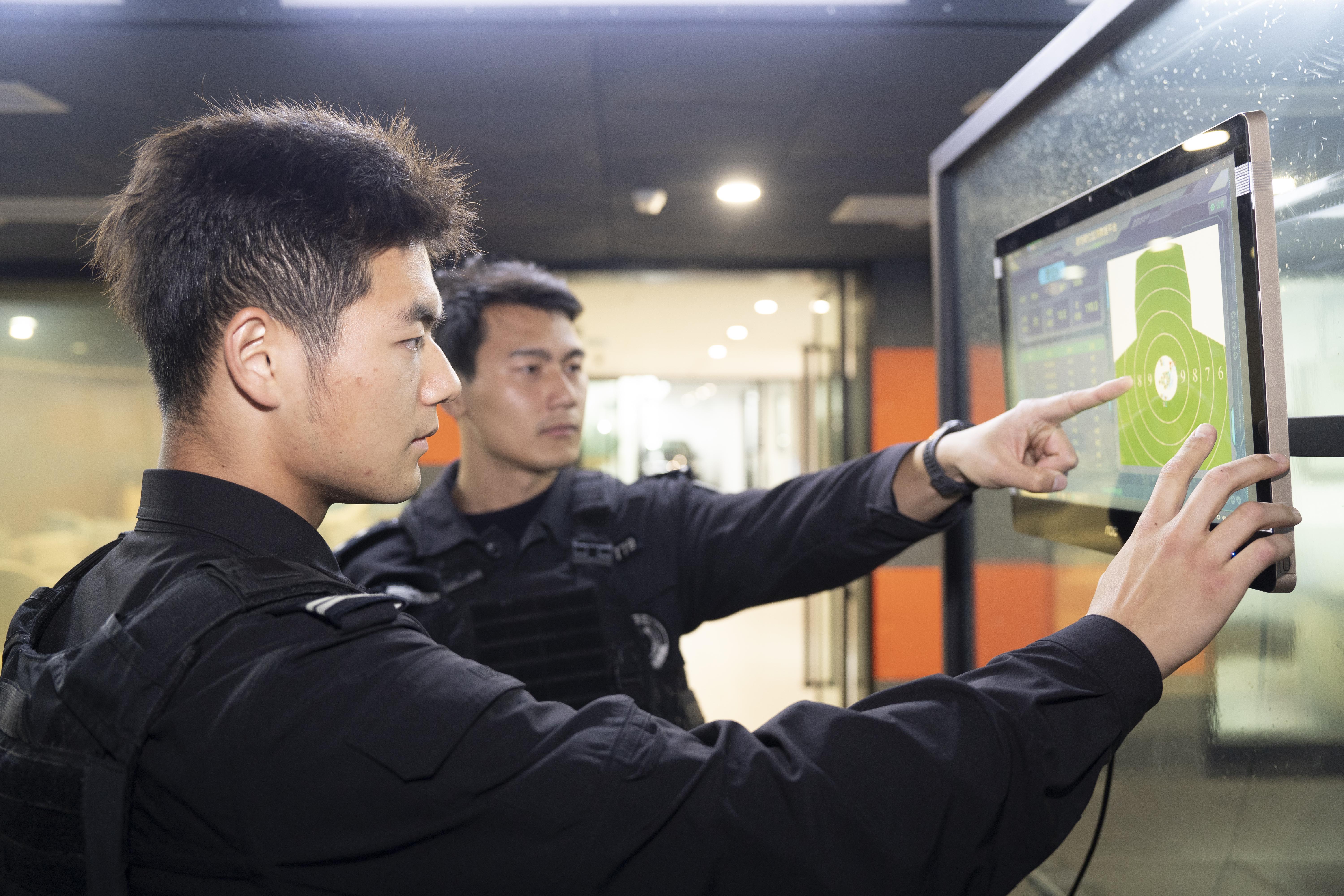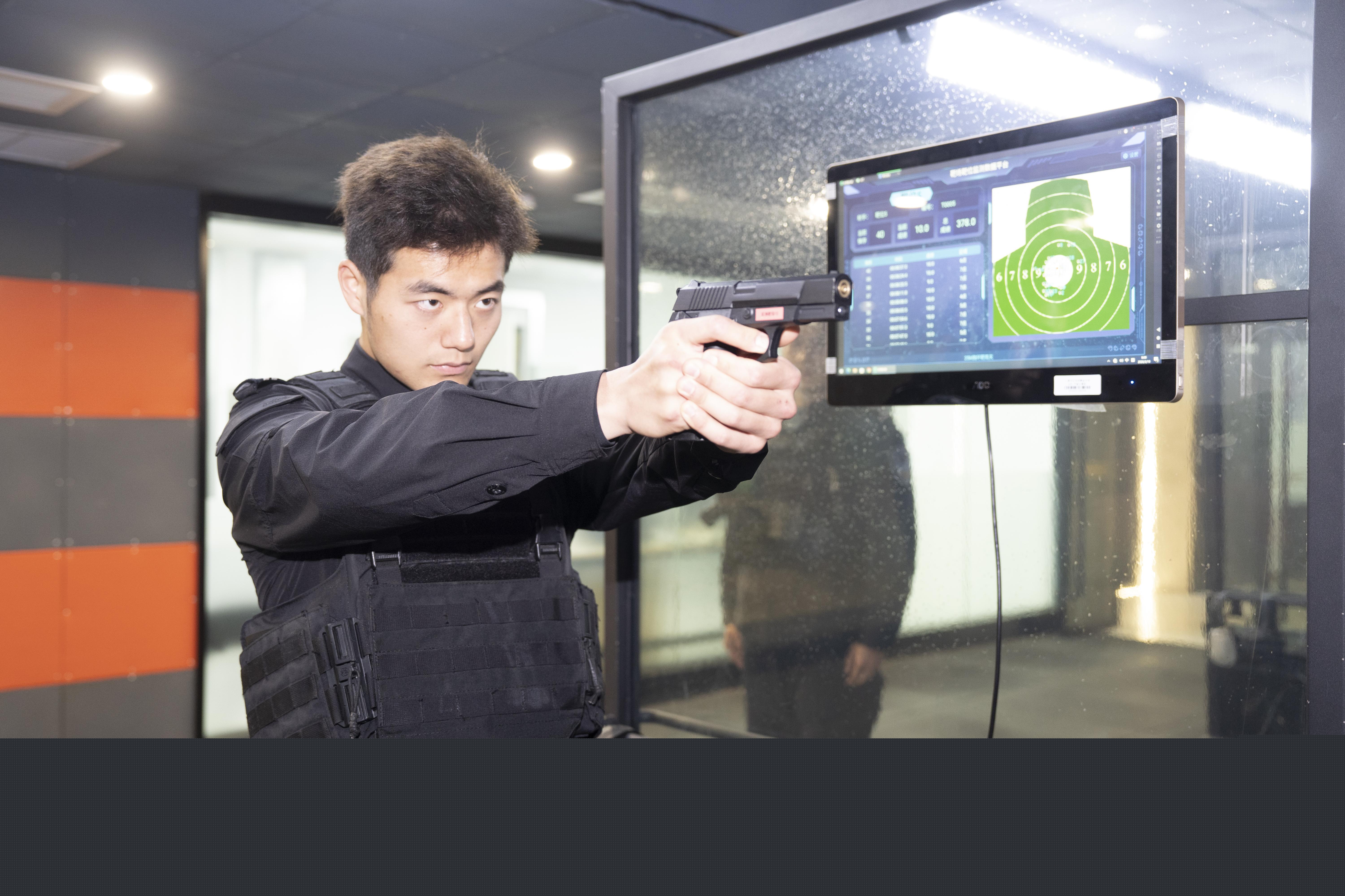 靜安公安分局民警在智能靶場開展射擊訓練。