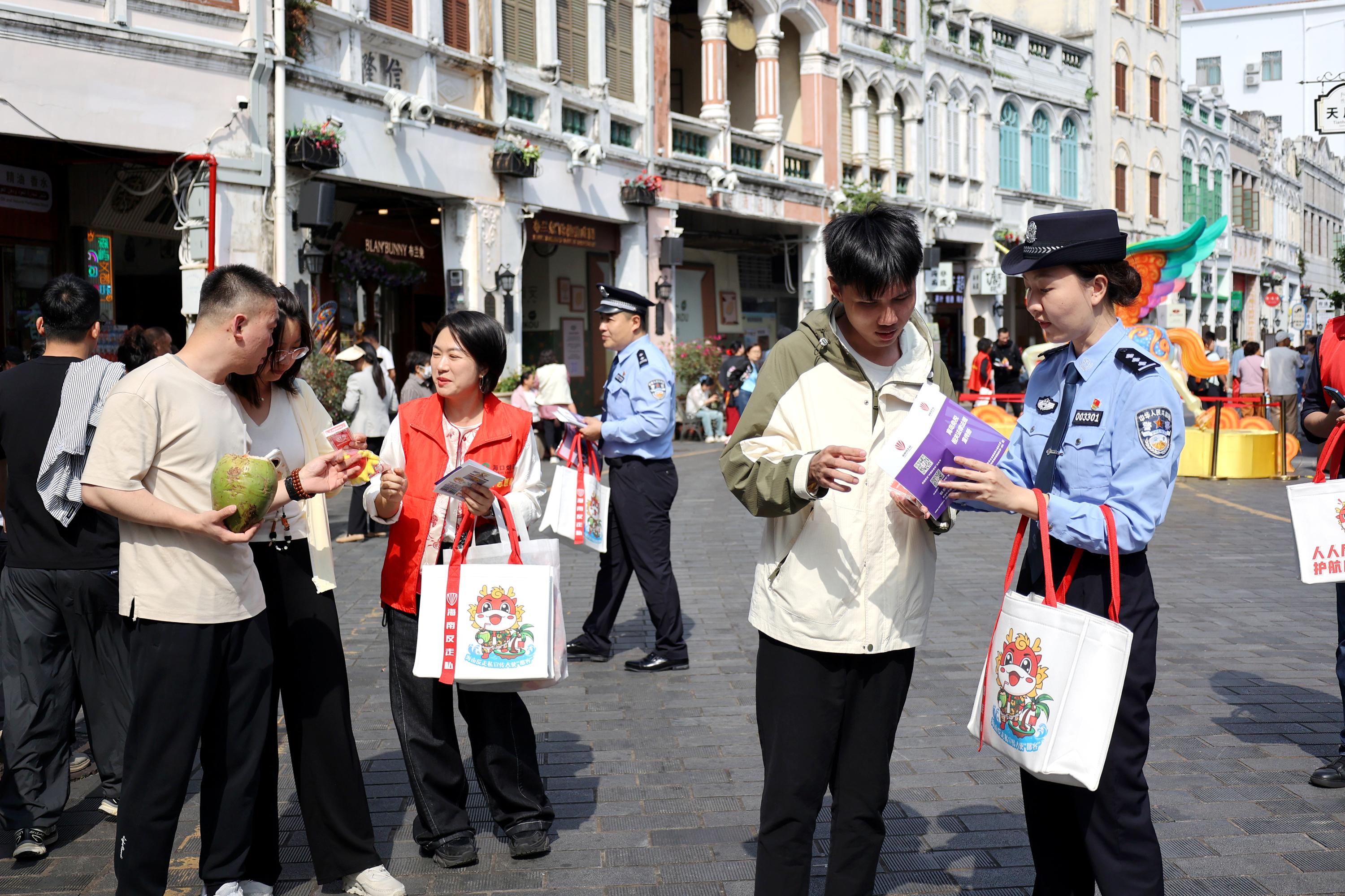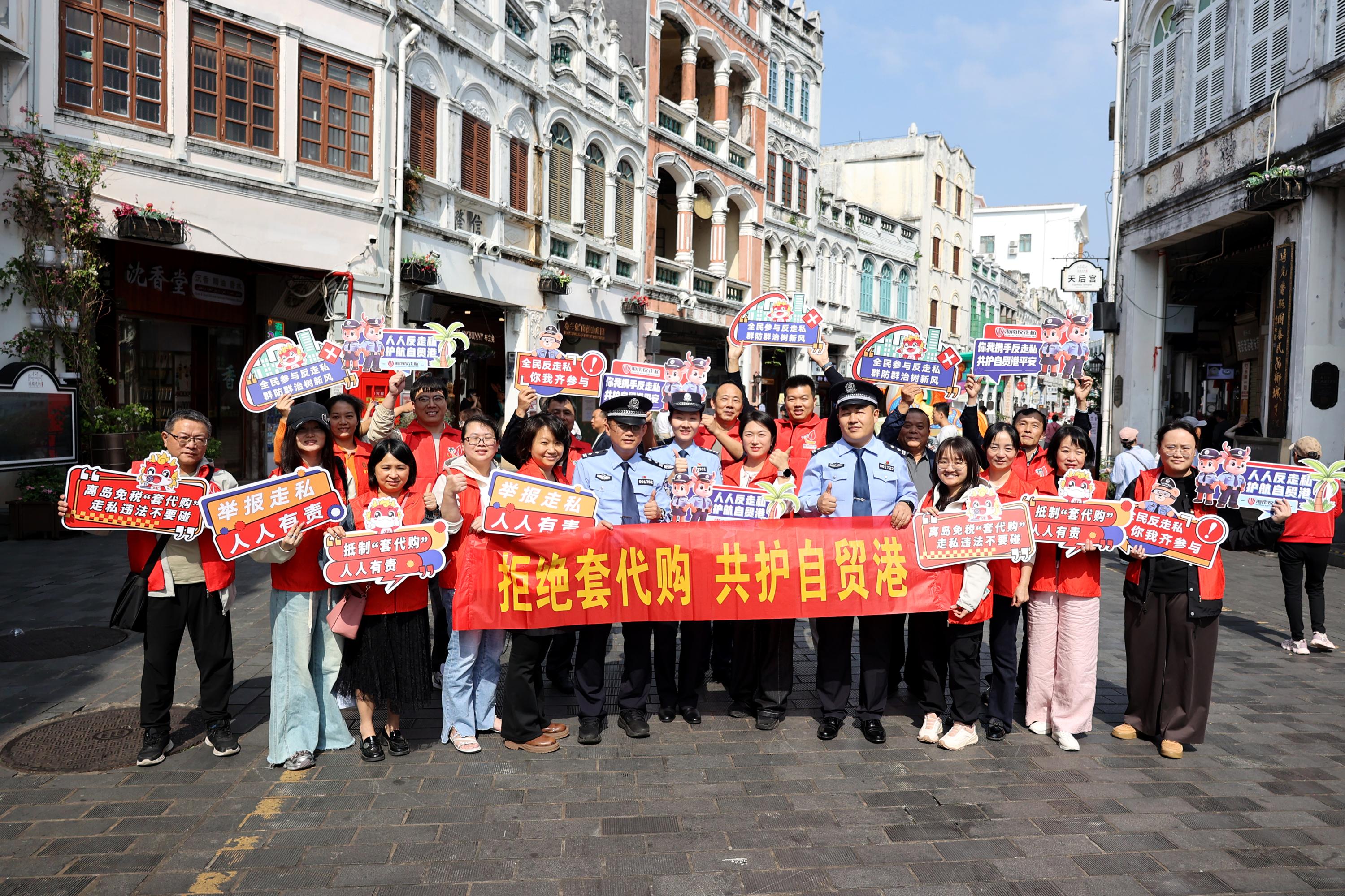 海南反走私普法宣傳走進??跉v史文化名街騎樓老街。代龍超 攝
