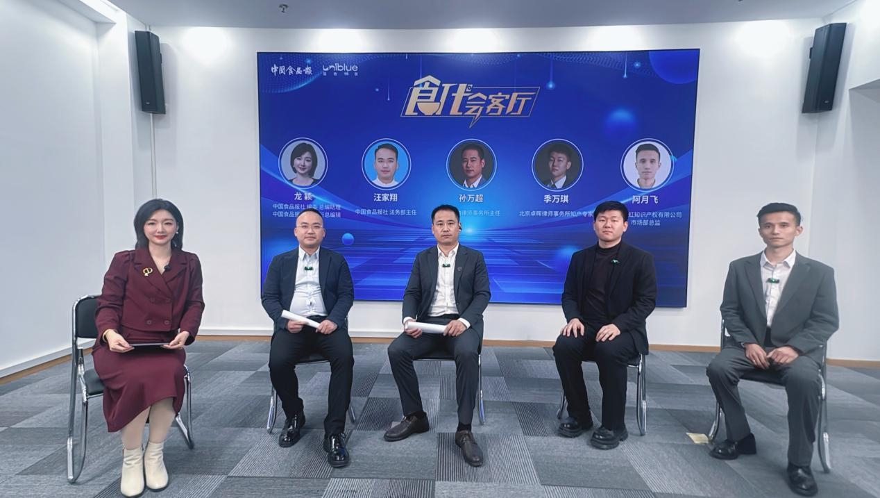 啟動儀式后,中國食品報社《食代會客廳》特別節(jié)目以“共建食品行業(yè)知識產(chǎn)權(quán)保護新生態(tài)”為主題,由本次活動主持人中國食品報社編委、報網(wǎng)執(zhí)行總編輯龍穎與中國食品報社法務(wù)部主任汪家翔、北京明向律師事務(wù)所主任孫萬超、北京卓暉律師事務(wù)所知產(chǎn)專家季萬琪、北京漢虹知識產(chǎn)權(quán)有限公司市場代表阿月飛展開對話,共同探討行業(yè)協(xié)同保護機制的建設(shè)路徑。