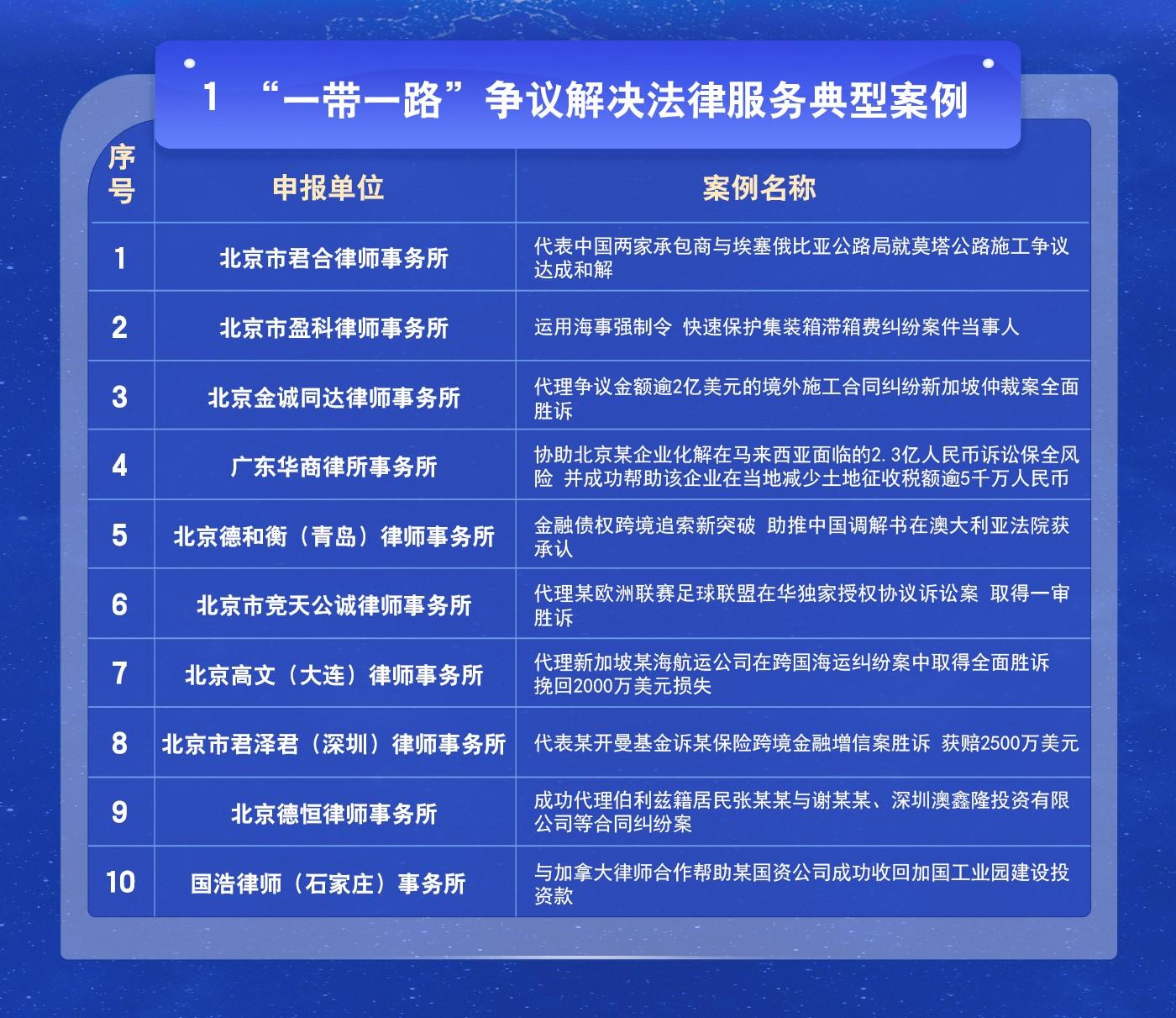 “一帶一路”法律服務(wù)創(chuàng)新典型案例名單
