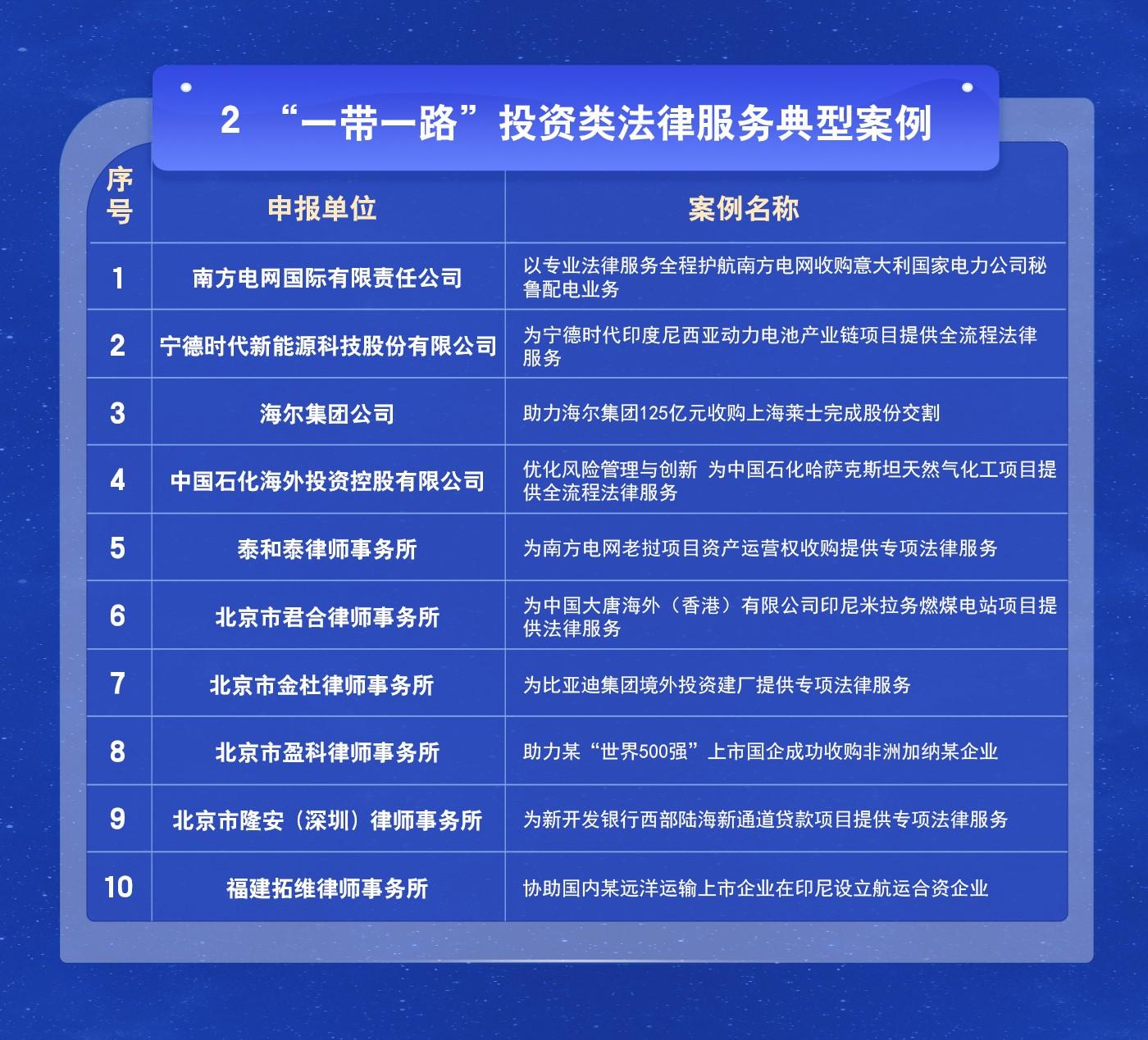 “一帶一路”投資類法律服務(wù)典型案例名單