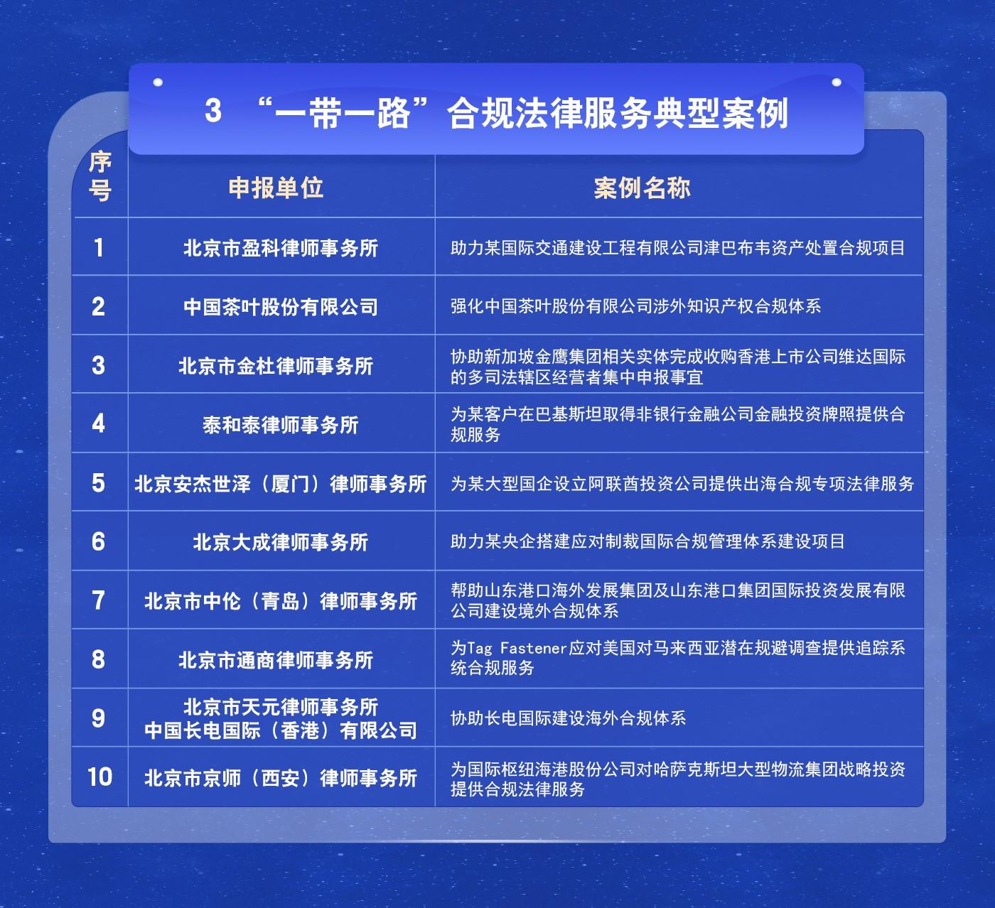 “一帶一路”合規(guī)法律服務(wù)案例名單