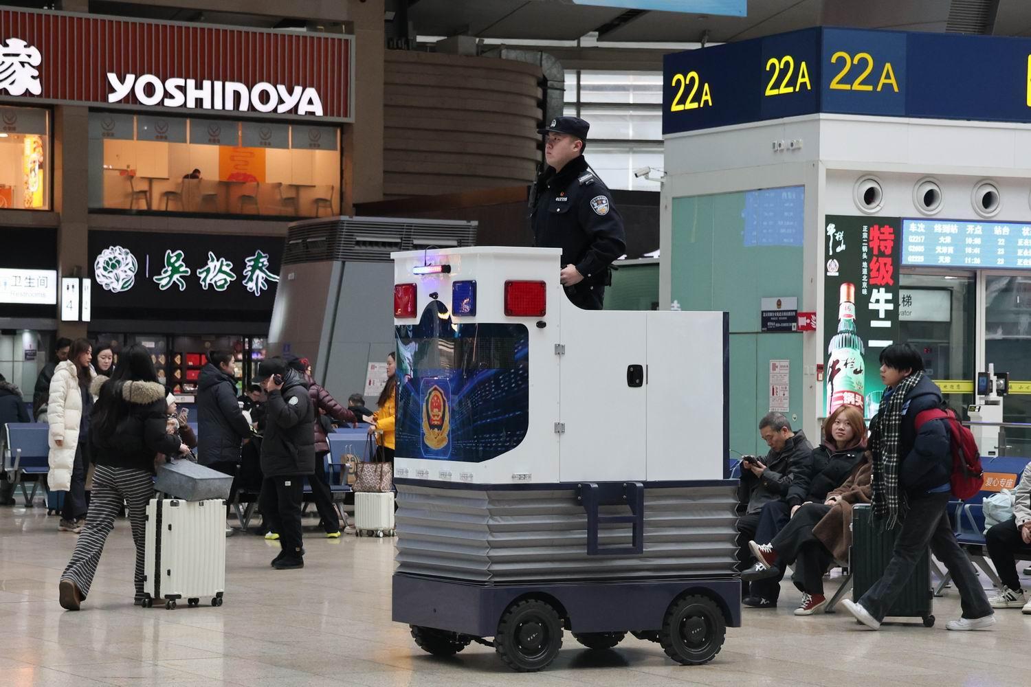 據(jù)北京鐵路公安處相關(guān)負(fù)責(zé)人介紹,為了解決此前北京南站、北京西站候車區(qū)因面積廣而導(dǎo)致“求助難”的情況,北京鐵警自2025年底在客流量大的車站醒目位置梯次投放了智能瞭望崗、多功能巡邏車等警用設(shè)施,通過高處“鷹眼”與地面“快腿”結(jié)合,使派出所對轄區(qū)全域有了更強(qiáng)的“掌控力”,同時顯著提升了為民服務(wù)的效率。通過點線結(jié)合的崗位模式,北京鐵路公安民警可以第一時間發(fā)現(xiàn)并響應(yīng)突發(fā)情況,確保警力快速集結(jié)、高效處置,推動警務(wù)工作向主動預(yù)防、精準(zhǔn)服務(wù)轉(zhuǎn)型。